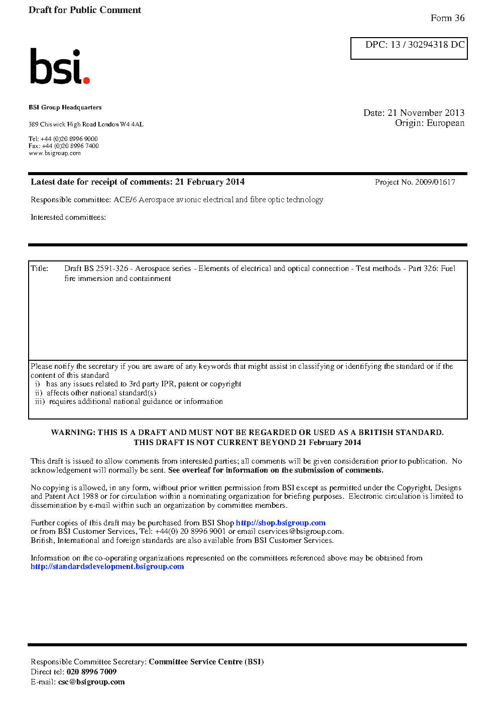 BS 2591-326. Aerospace series. Elements of electrical and optical connection. Test methods. Part 326. Fuel fire immersion and containment