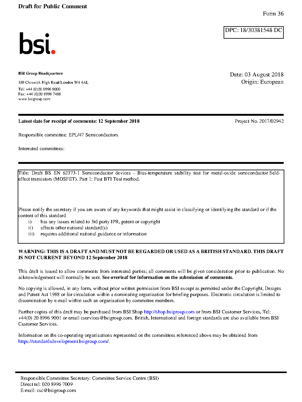 BS EN 62373-1. Semiconductor devices. Bias-temperature stability test for metal-oxide semiconductor field-effect transistors (MOSFET) Part 1. Fast BTI Test method