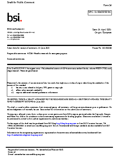 BS EN 4717. Aerospace series. Polyetheretherketone with 55 % continuous carbon fibre by volume (PEEK-CF55) stock shape material. Material specification