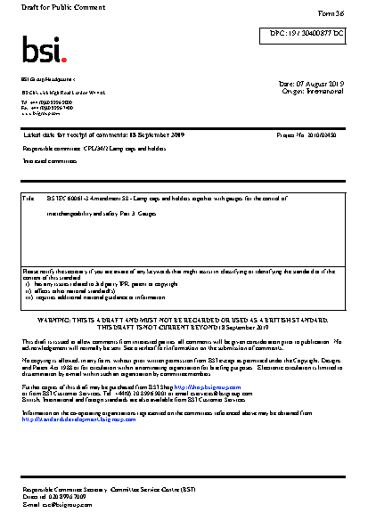 BS EN IEC 60061-3 AMD58. Lamp caps and holders together with gauges for the control of interchangeability safety Part 3. Gauges