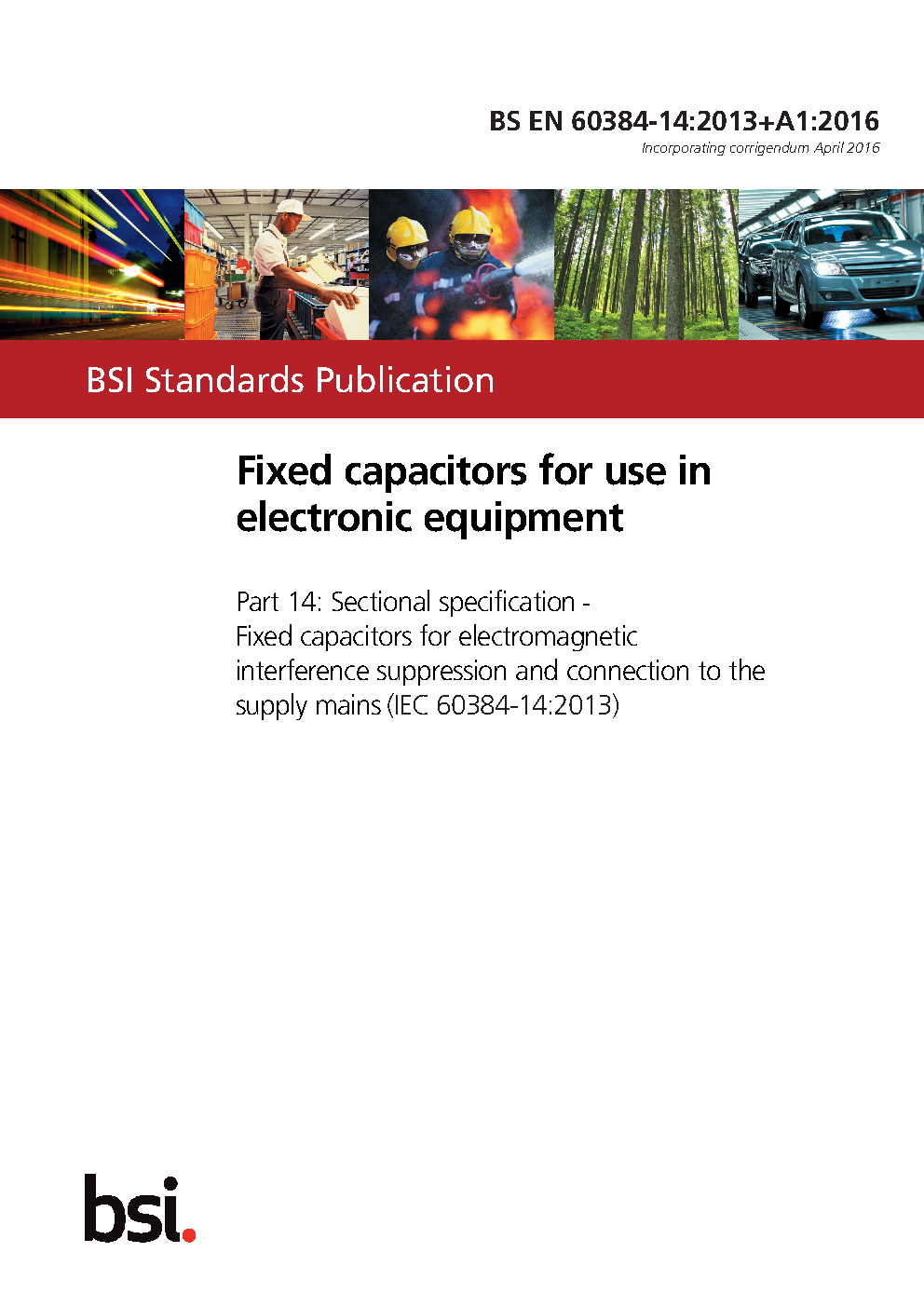 BS EN 60384-14. Fixed capacitors for use in electronic equipment Part 14. Sectional specification. electromagnetic interference suppression and connection to the supply mains