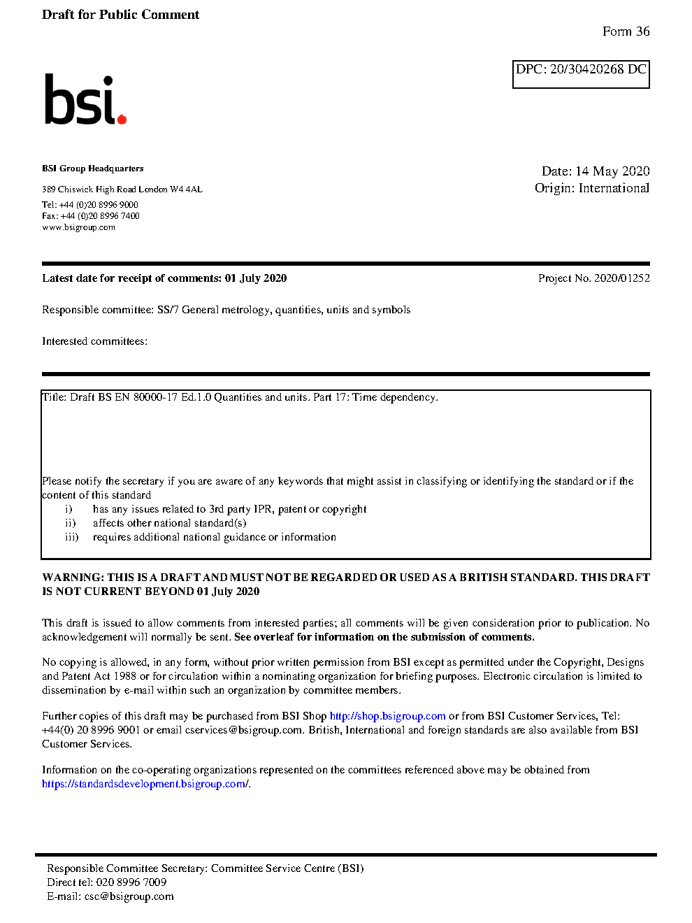 BS EN 80000-17. Quantities and units Part 17. Time dependency