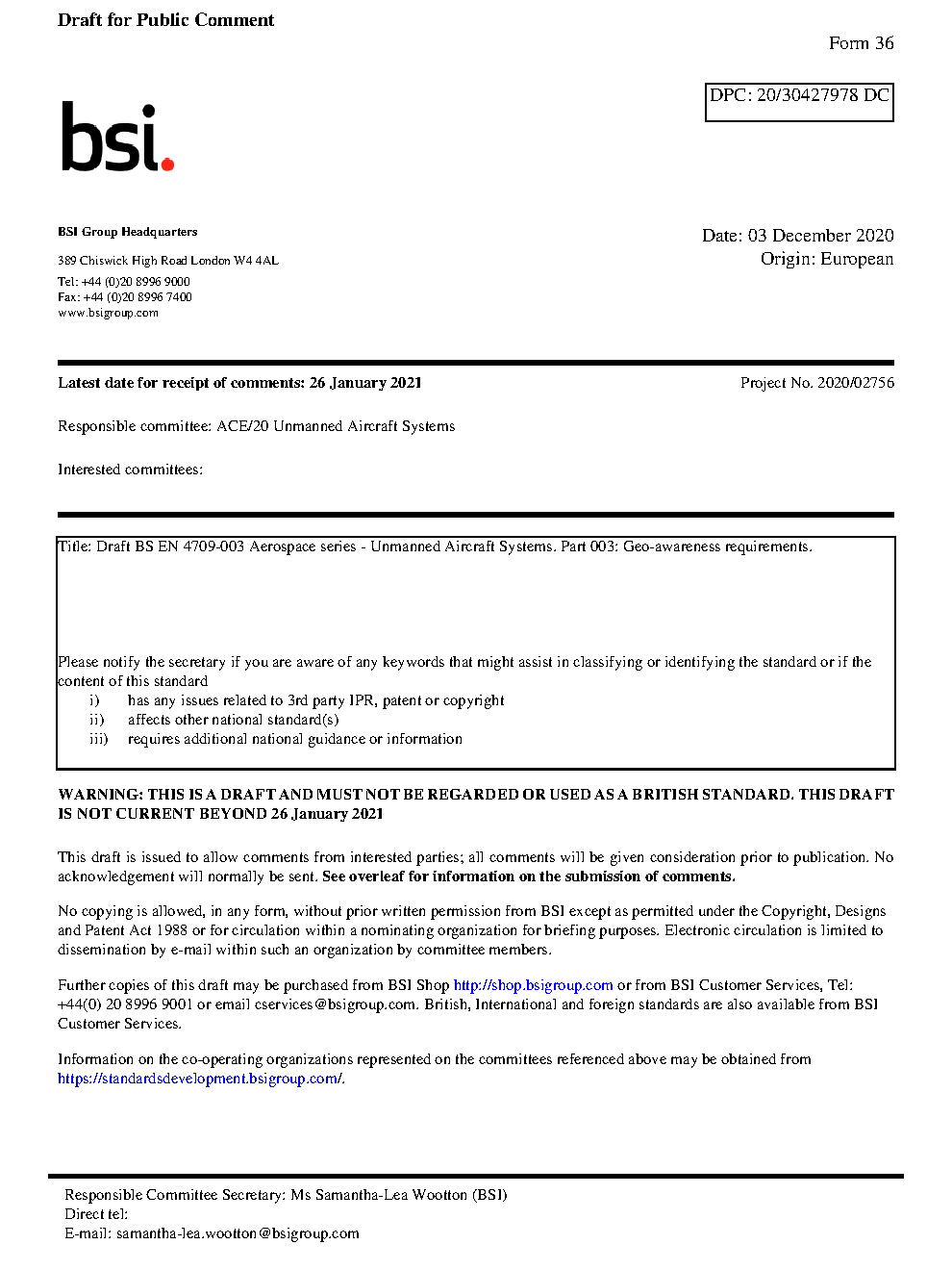 BS EN 4709-003. Aerospace series. Unmanned Aircraft Systems Part 003. Geo-awareness requirements