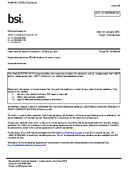 BS EN IEC 62772. Composite hollow core station post insulators for substations with a.c. voltage greater than 1 000 V and d.c. voltage greater than 1 500 V. Definitions, test methods and acceptance criteria