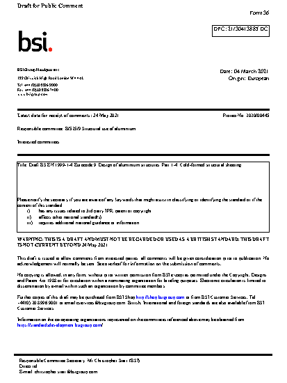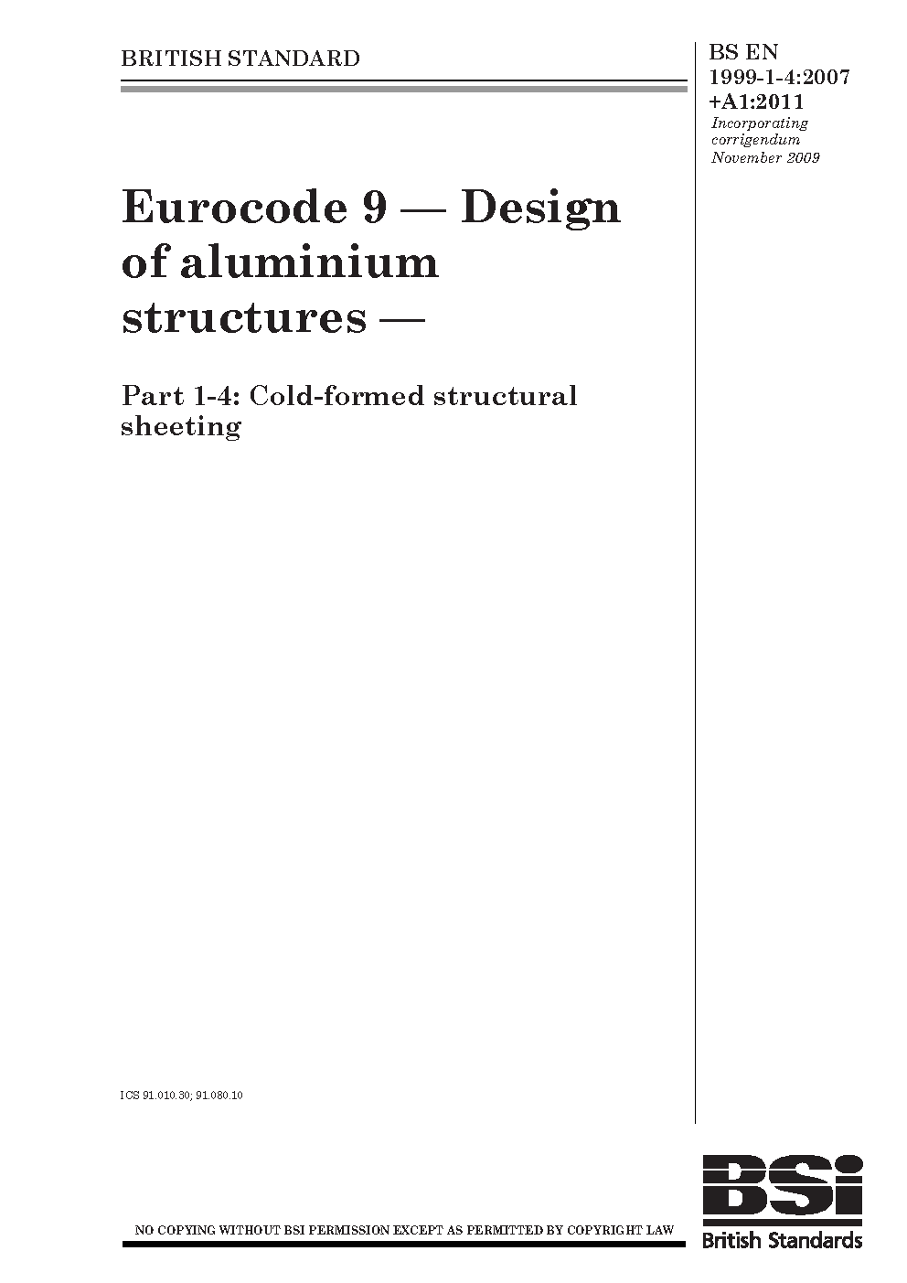 BS EN 1999-1-4. Eurocode 9. Design of aluminium structures Part 1-4. Cold-formed structural sheeting