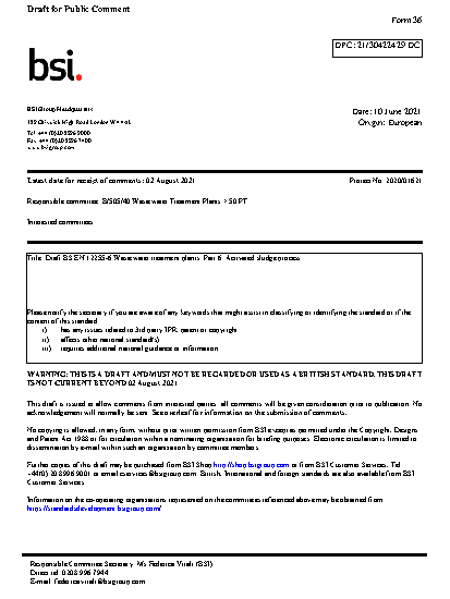 BS EN 12255-6. Wastewater treatment plants Part 6. Activated sludge process
