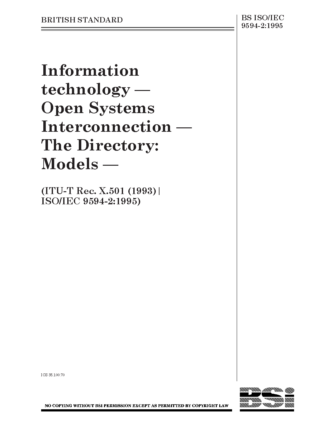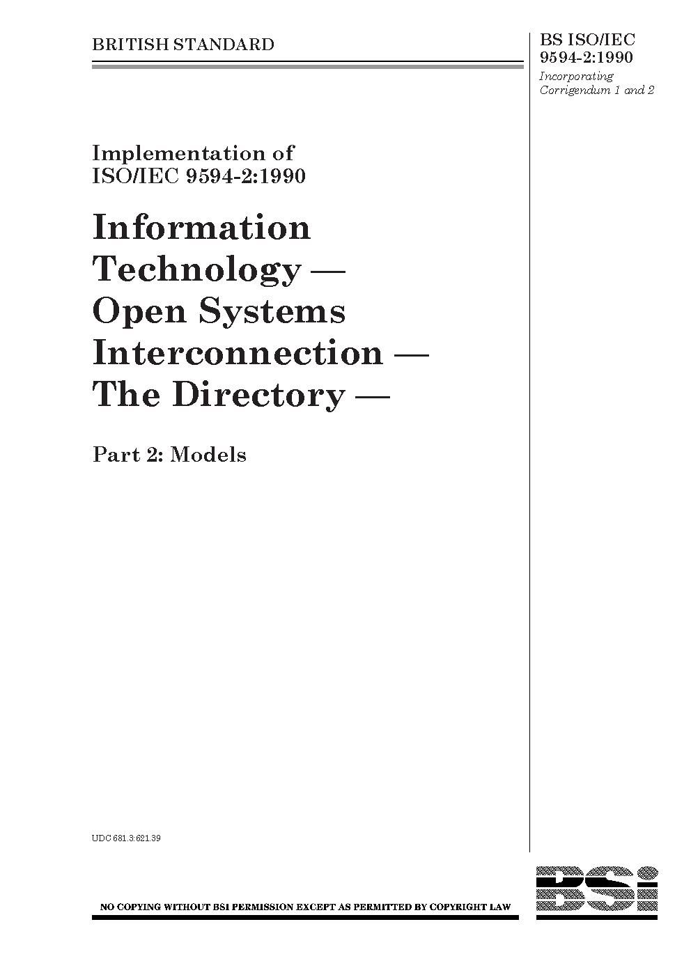 BS ISO/IEC 9594-2 AMD1. Information technology. Open systems interconnection Part 2. The Directory: Models