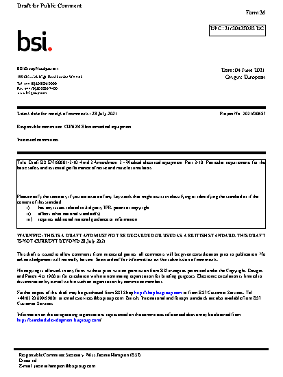 BS EN IEC 60601-2-10 AMD2. Medical electrical equipment Part 2-10. Particular requirements for the basic safety and essential performance of nerve muscle stimulators