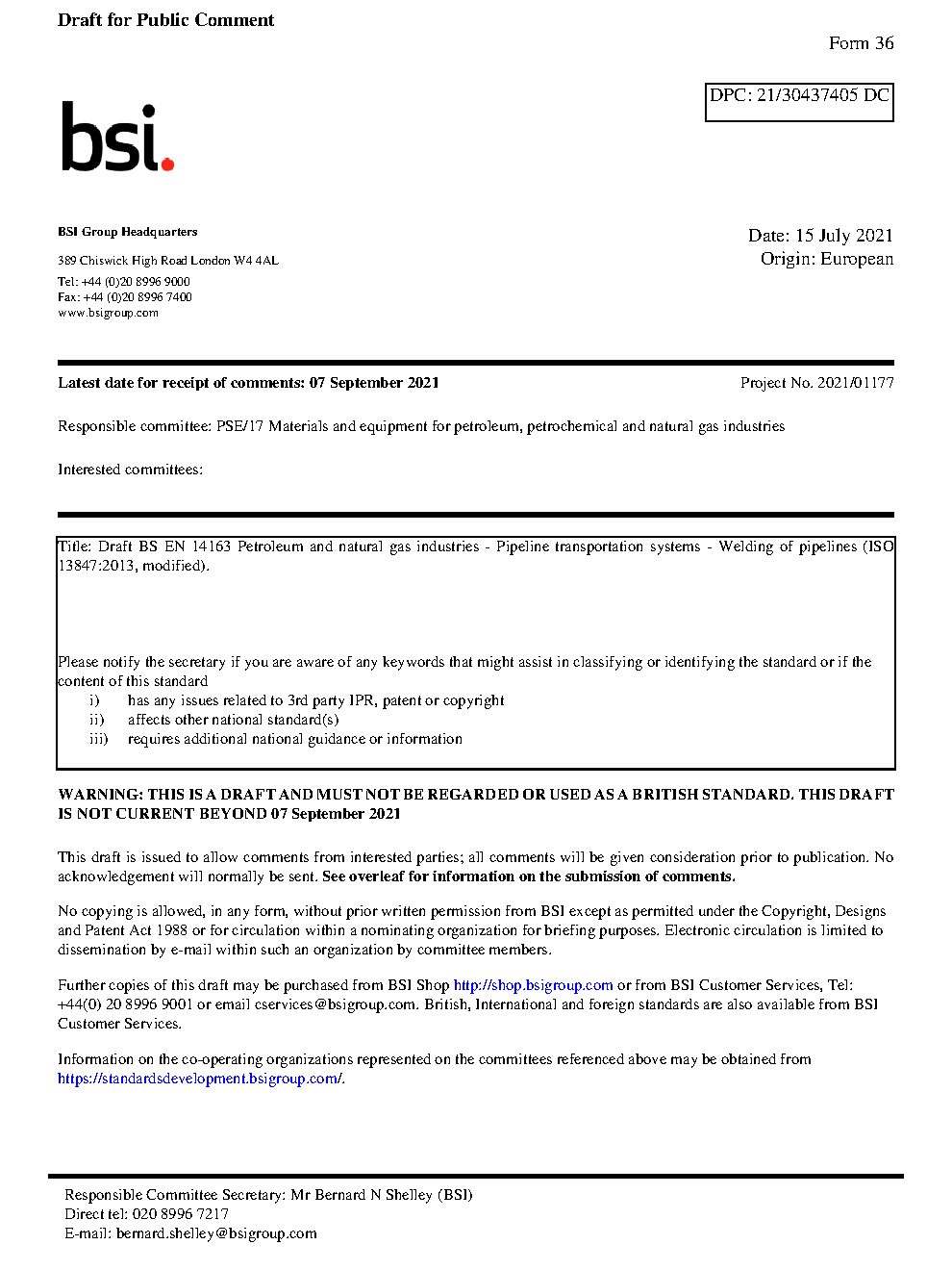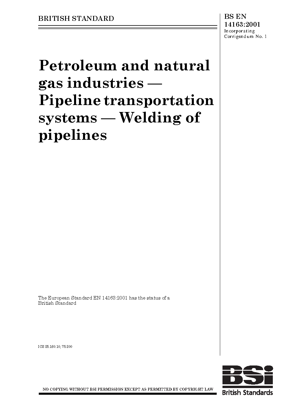 BS EN 14163. Petroleum and natural gas industries. Pipeline transportation systems. Welding of pipelines (ISO 13847:2013, modified)