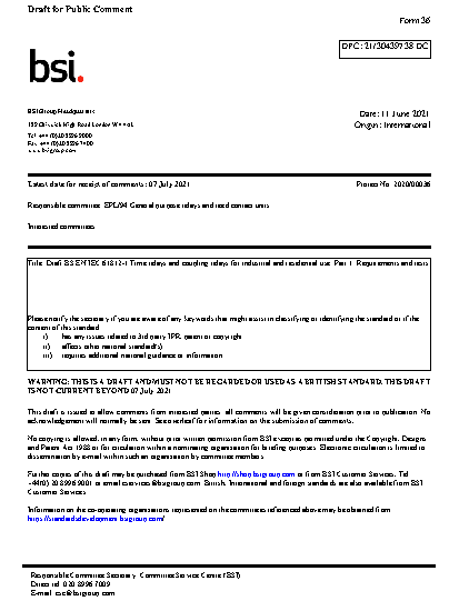 BS EN IEC 61812-1. Time relays and coupling for industrial residential use Part 1. Requirements tests