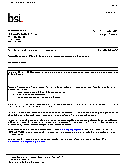BS EN 14983. Explosion prevention and protection in underground mines. Equipment and protective systems for firedamp drainage