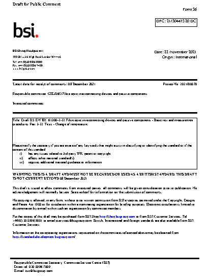 BS EN IEC 61300-2-22. Fibre optic interconnecting devices and passive components. Basic test measurement procedures Part 2-22. Tests. Change of temperature
