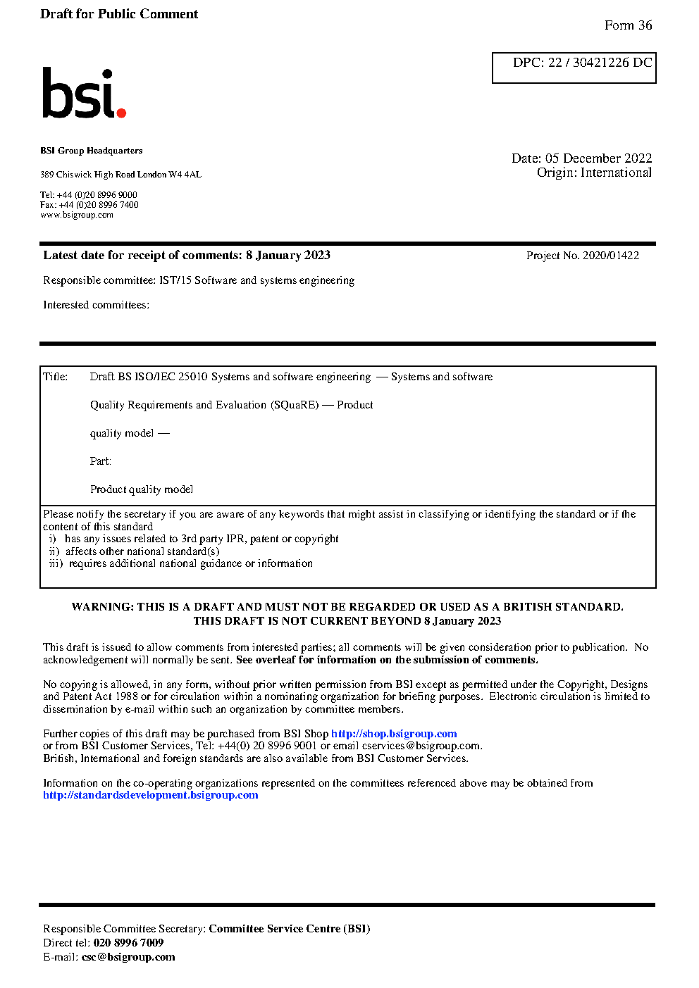 Draft standard