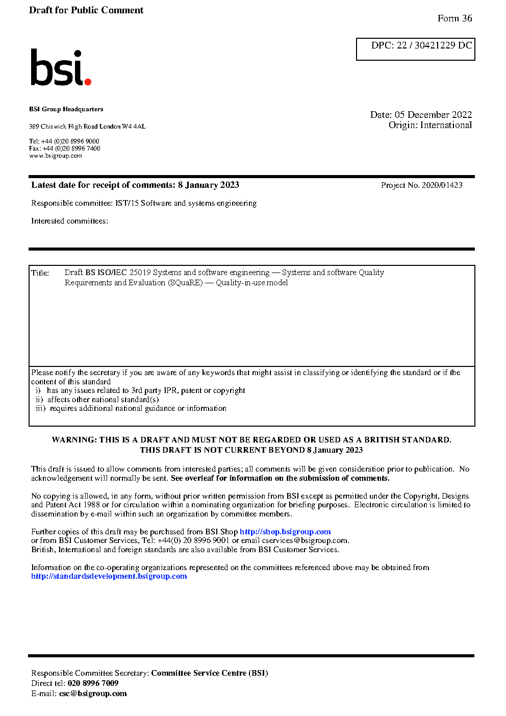 Draft standard