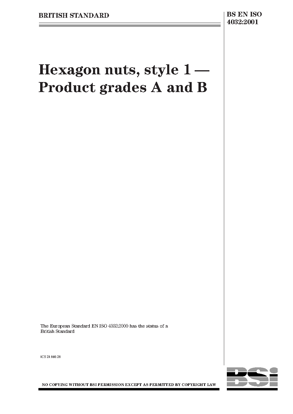 BS EN ISO 4032. Fasteners. Hexagon regular nuts (style 1)