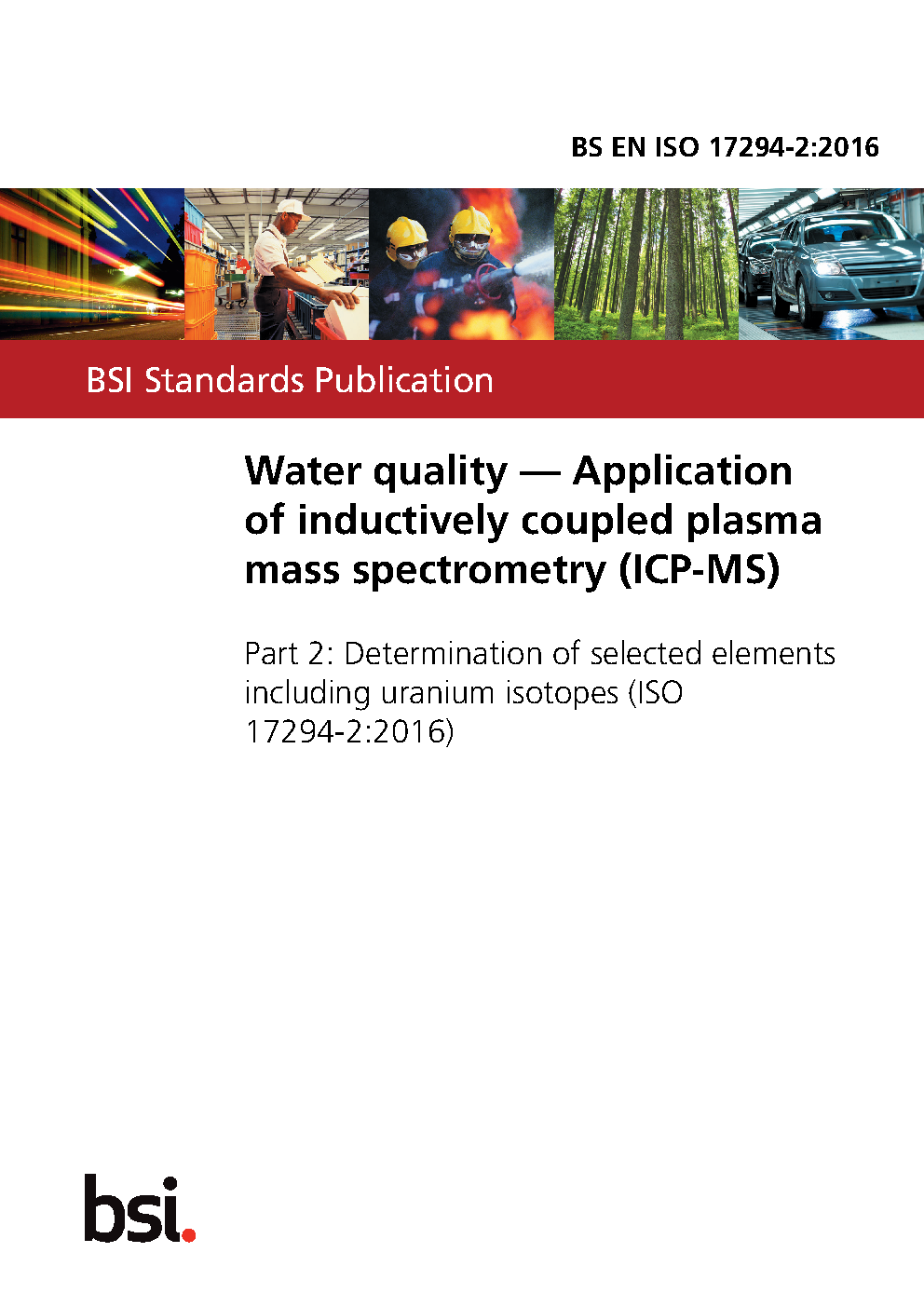 BS EN ISO 17294-2. Water quality. Application of inductively coupled plasma mass spectrometry (ICP-MS) Part 2. Determination selected elements including uranium isotopes