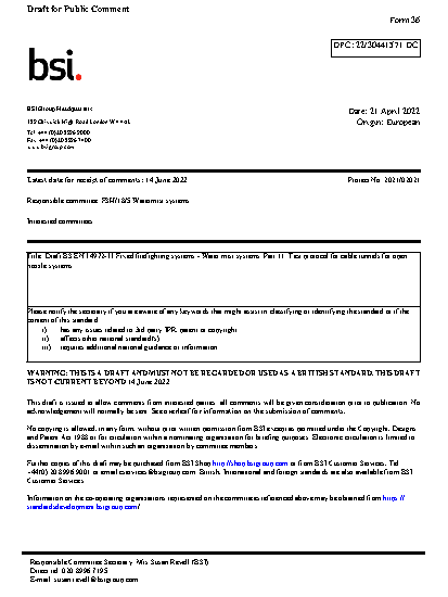 BS EN 14972-11. Fixed firefighting systems. Water mist systems Part 11. Test protocol for cable tunnels open nozzle