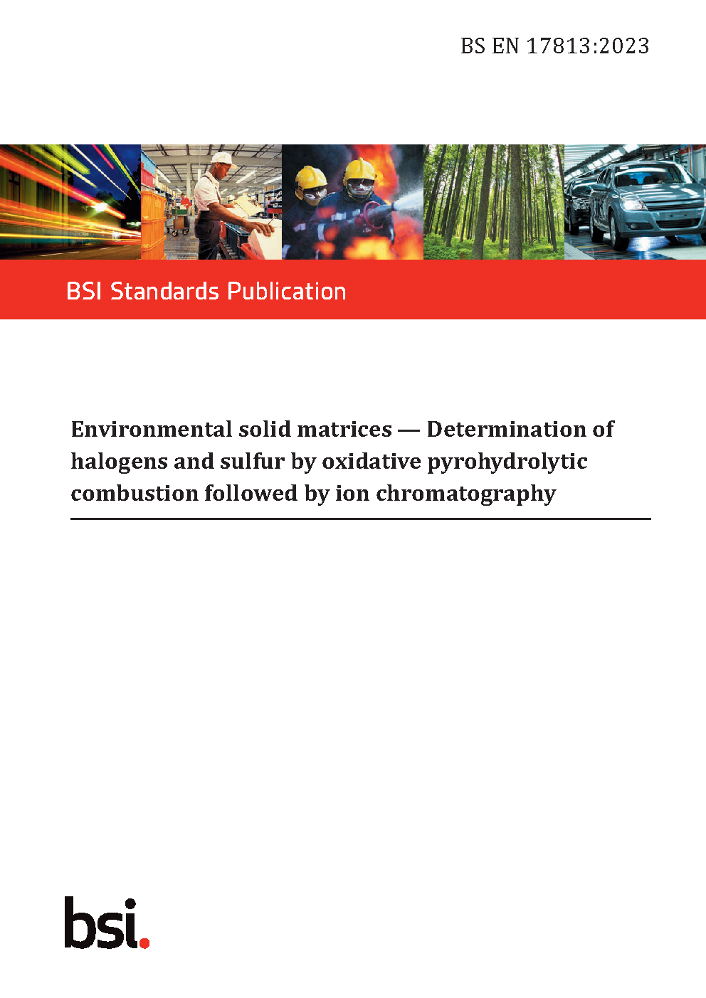 BS EN 17813. Environmental matrices. Halogens and sulfur by oxidative pyrohydrolytic combustion followed by ion chromatography detection and complementary determination methods