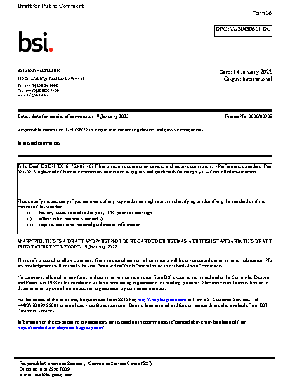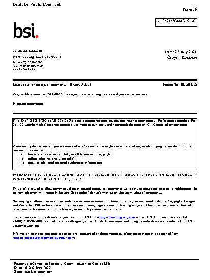 BS EN IEC 61753-021-02. Fibre optic interconnecting devices and passive components. Performance standard Part 021-02. Single-mode fibre connectors terminated as pigtails patchcords for category C. Controlled environment