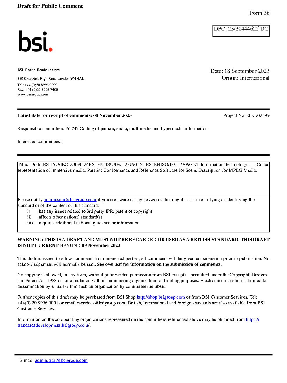 BS ENISO/IEC 23090-24. Information technology. Coded representation of immersive media Part 24. Conformance and Reference Software for Scene Description MPEG Media