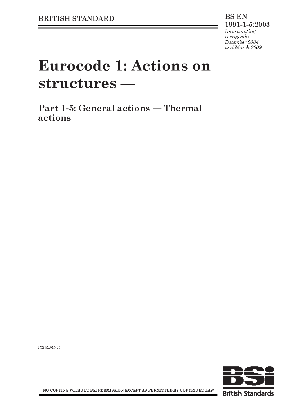 BS EN 1991-1-5. Eurocode 1. Actions on structures Part 1-5. Thermal actions