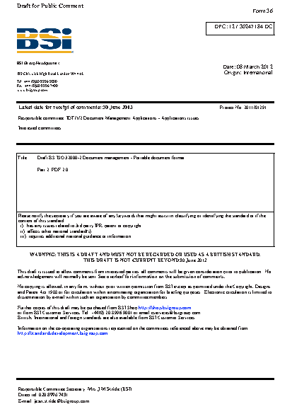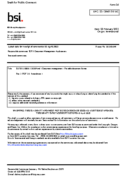 BS ISO 32000-2 AMD 1. Document management. Portable document format Part 2. PDF
