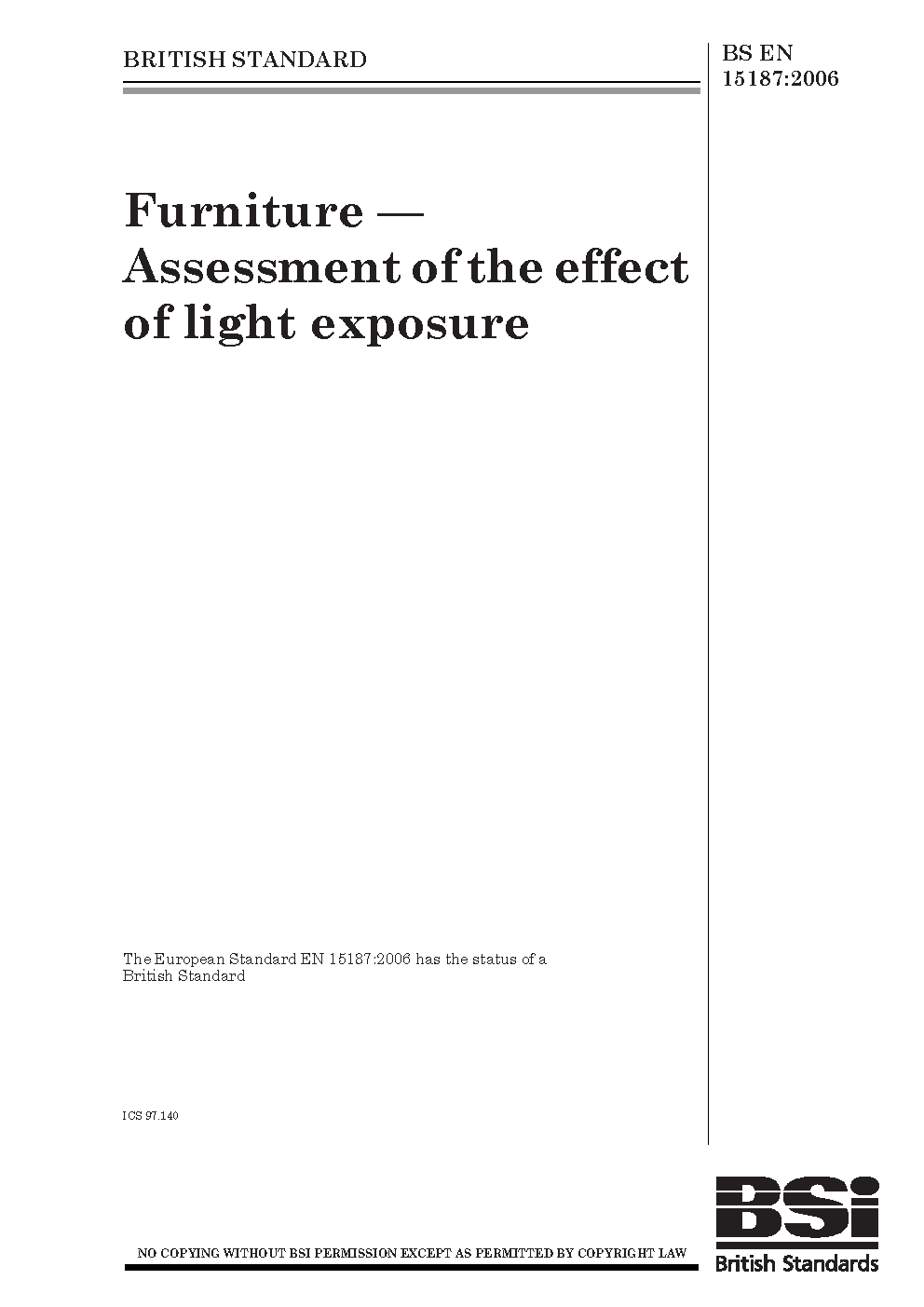 BS EN 15187. Furniture. Assessment of the effect of light exposure