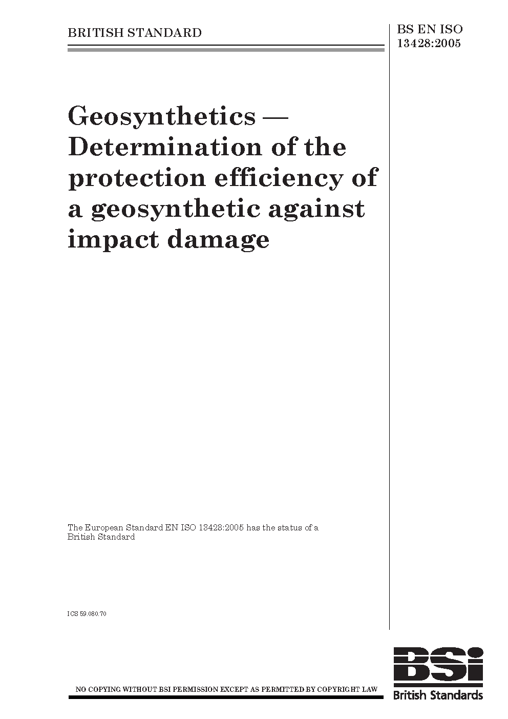 BS EN ISO 13428. Geosynthetics. Determination of the protection efficiency of a geosynthetic against impact damage