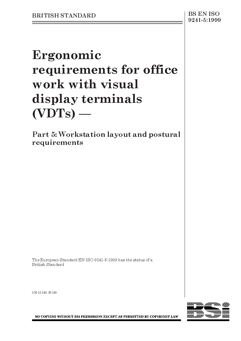 BS EN ISO 9241-5. Ergonomics of human-system interaction Part 5. Workstation layout and postural requirements