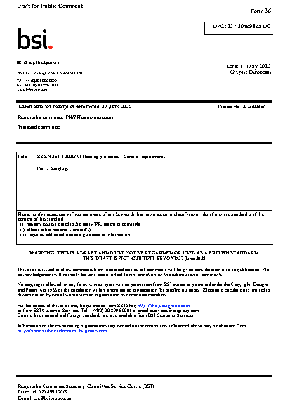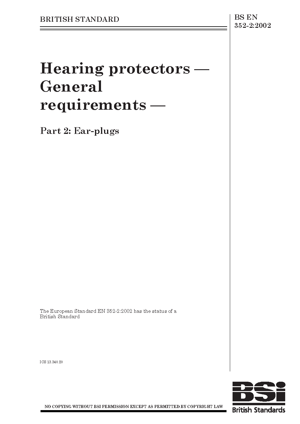 BS EN 352-2:2020 AMD 1. Hearing protectors. General requirements Part 2. Earplugs