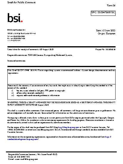 BS EN 17446 AMD 1. Fire extinguishing systems in commercial kitchens. System design, documentation, and test requirements