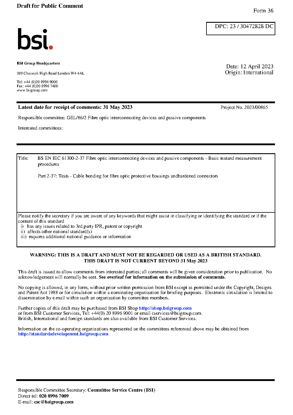 BS EN IEC 61300-2-37. Fibre optic interconnecting devices and passive components. Basic test measurement procedures Part 2-37. Tests. Cable bending for fibre protective housings hardened connectors