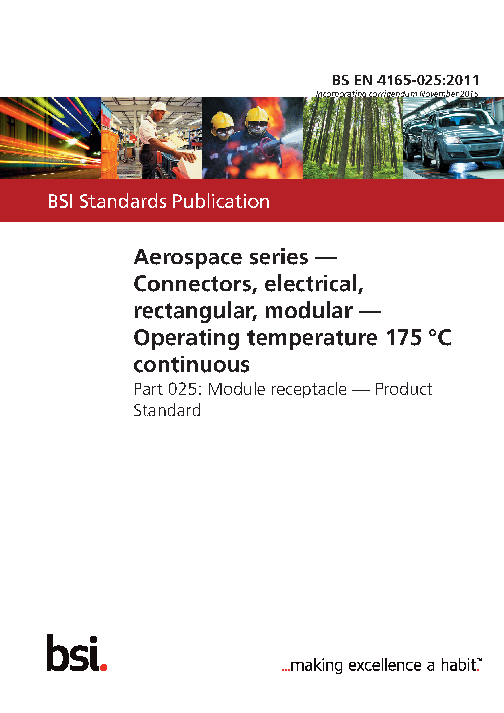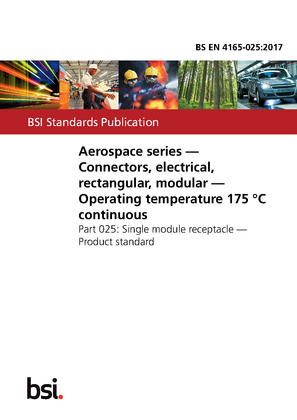 BS EN 4165-025. Aerospace series. Connectors, electrical, rectangular, modular. Operating temperature 175 °C continuous. Part 025. Single module receptacle. Product standard