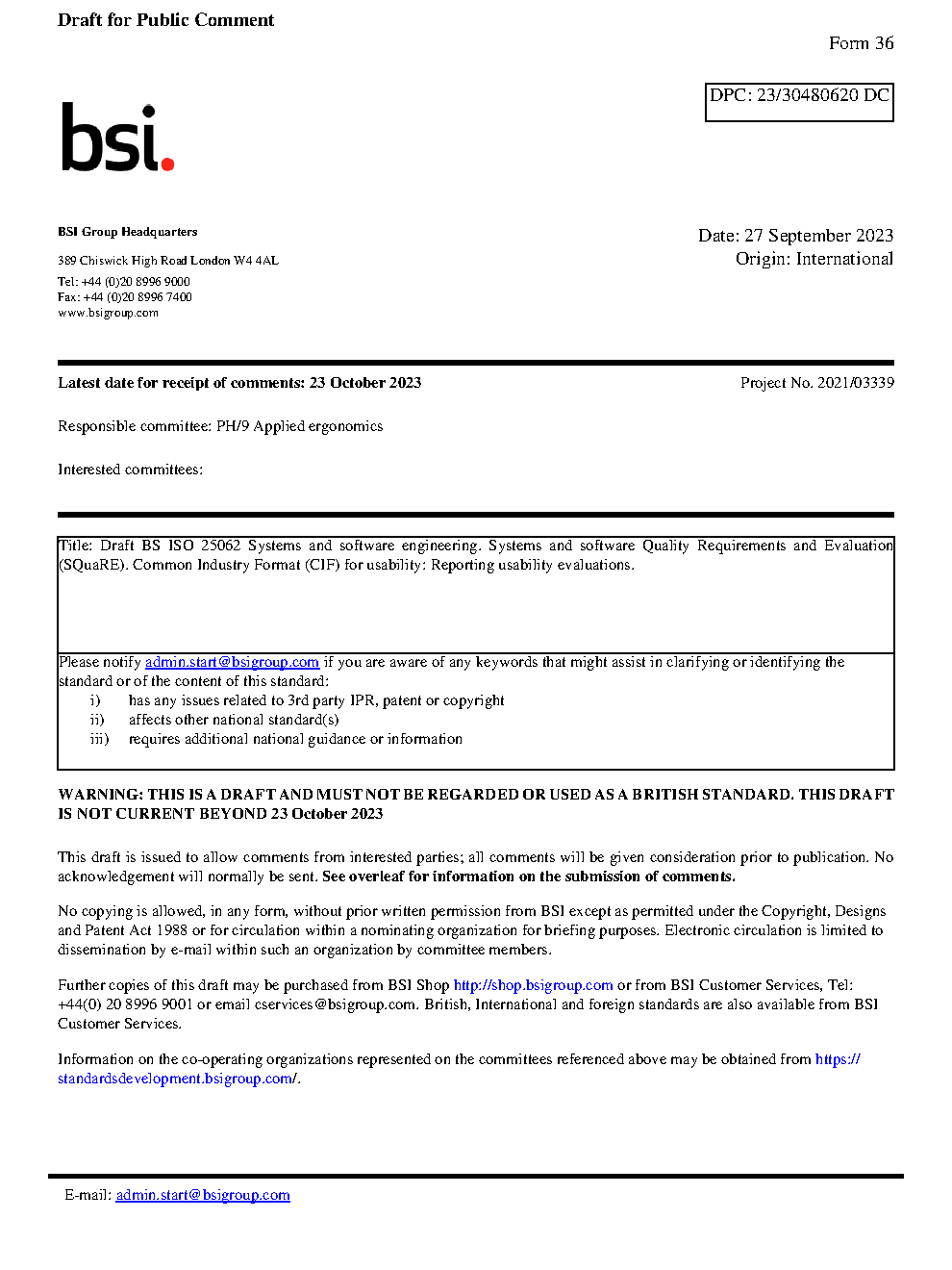 Draft standard