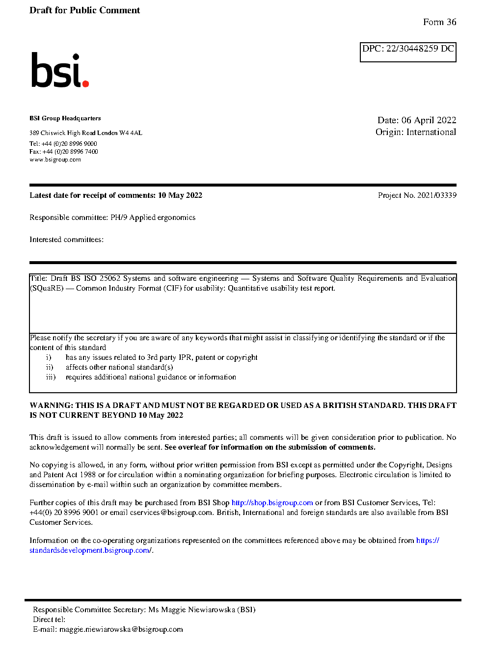 BS ISO 25062. Systems and software engineering. Systems and software Quality Requirements and Evaluation (SQuaRE). Common Industry Format (CIF) for usability: Reporting usability evaluations