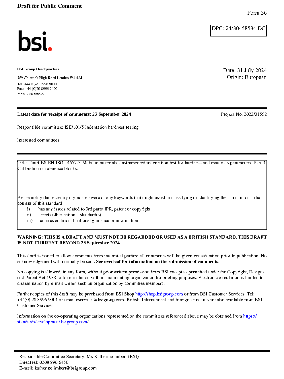 Draft standard
