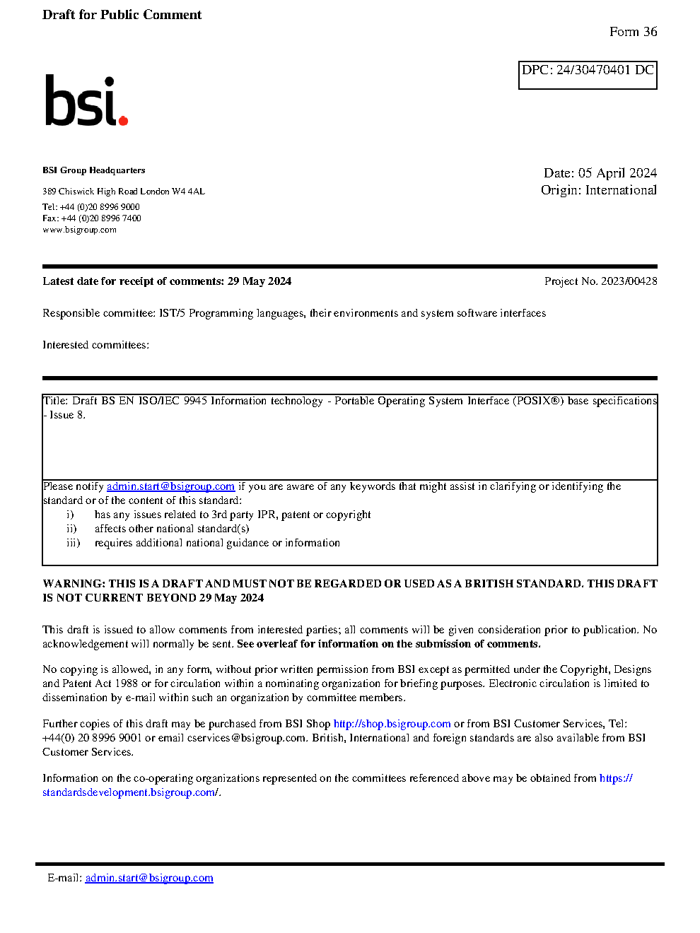 BS EN ISO/IEC 9945. Information technology. Portable Operating System Interface (POSIX®) base specifications. Issue 8
