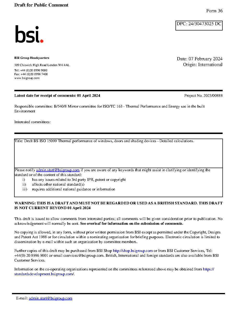 BS ISO 15099 Thermal performance of windows, doors and shading devices - Detailed calculations