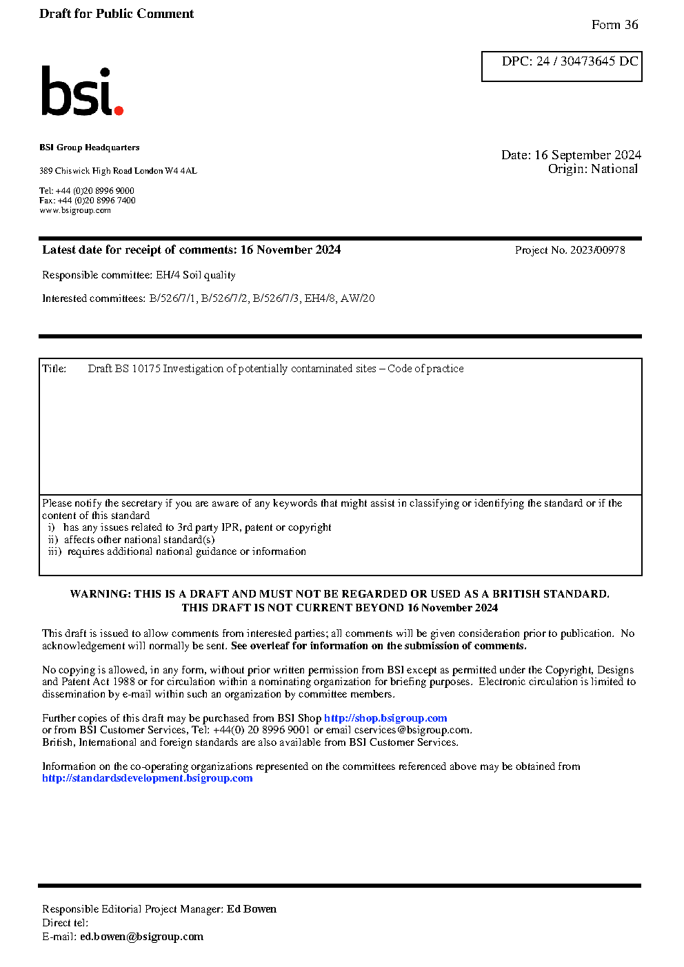 BS 10175 Investigation of potentially contaminated sites. Code of practice