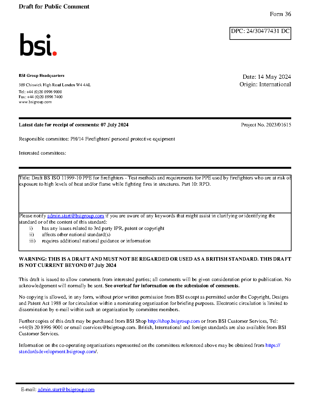 Draft standard