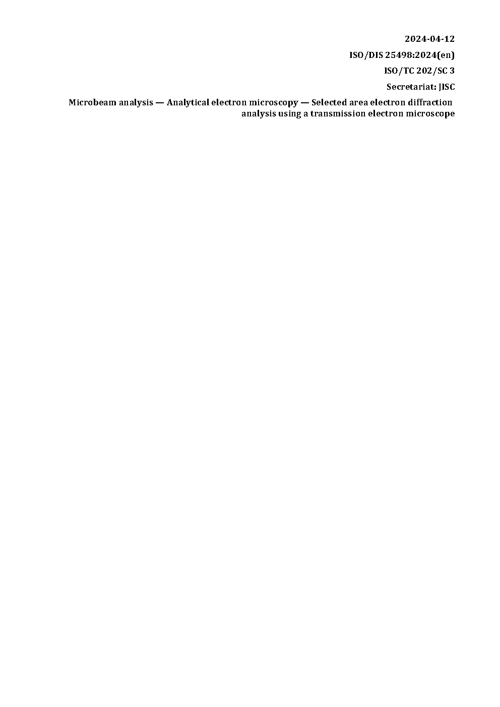 BS ISO 25498 Microbeam analysis - Analytical electron microscopy - Selected area electron diffraction analysis using a transmission electron microscope