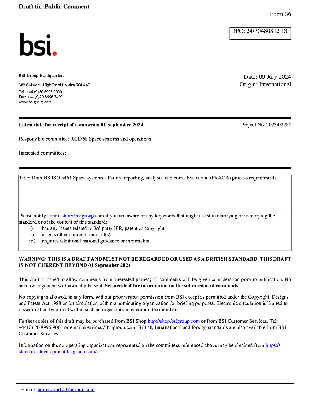 BS ISO 5461 Space systems - Failure reporting, analysis, and corrective action (FRACA) process requirements