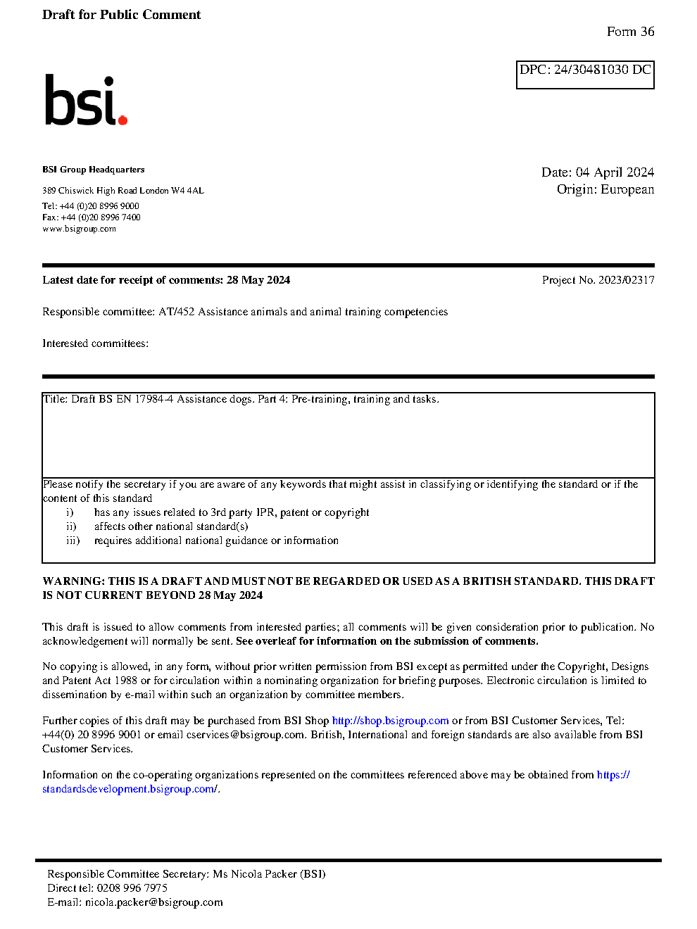 BS EN 17984-4 Assistance dogs Part 4: Pre-training, training and tasks