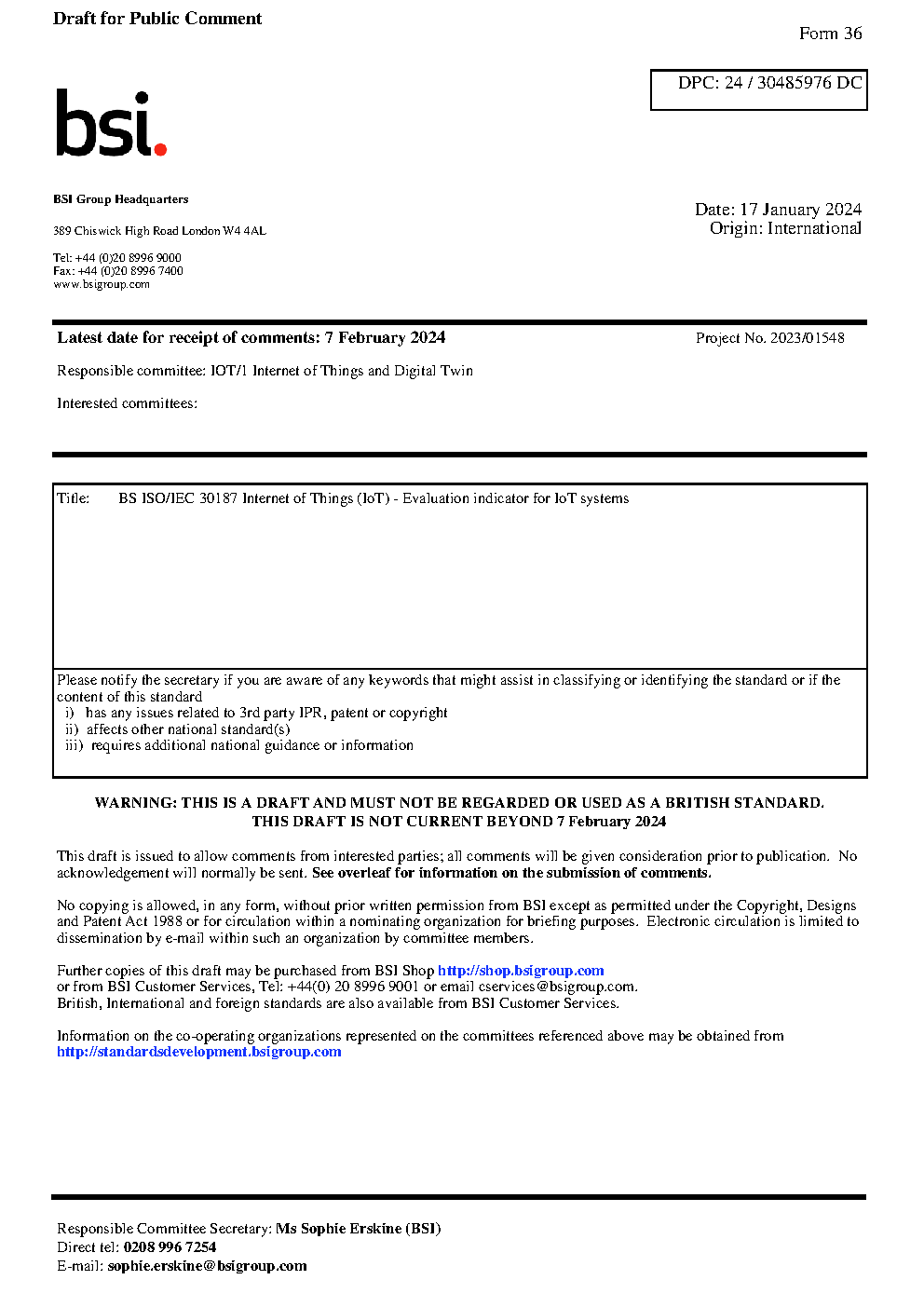 BS ISO/IEC 30187 Internet of Things (IoT) - Evaluation indicator for IoT systems