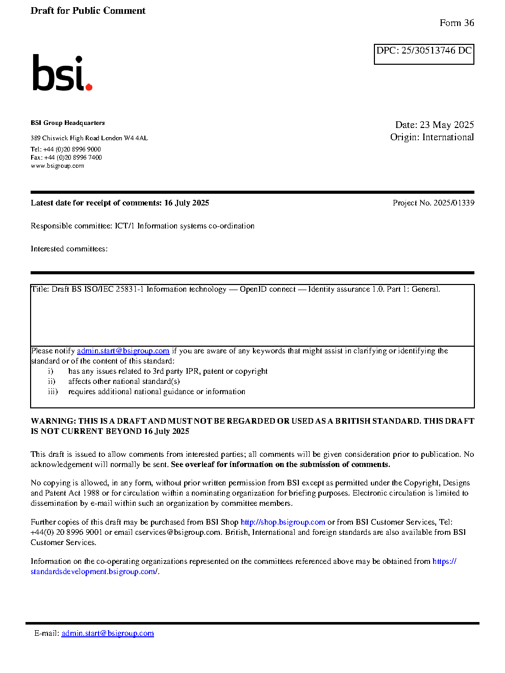 BS ISO/IEC 25831-1 Information technology — OpenID connect Identity assurance 1.0 Part 1: General