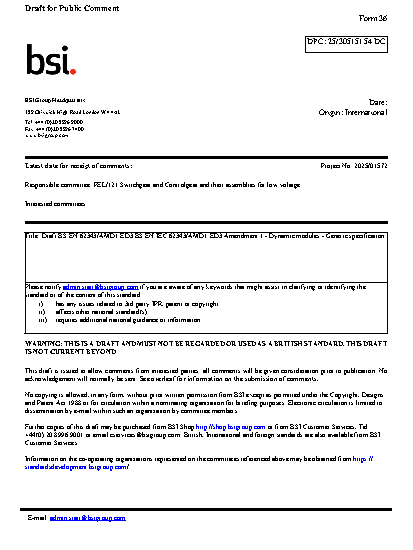 Draft BS EN IEC 62343/AMD1 Amendment 1. Dynamic modules. Generic specification