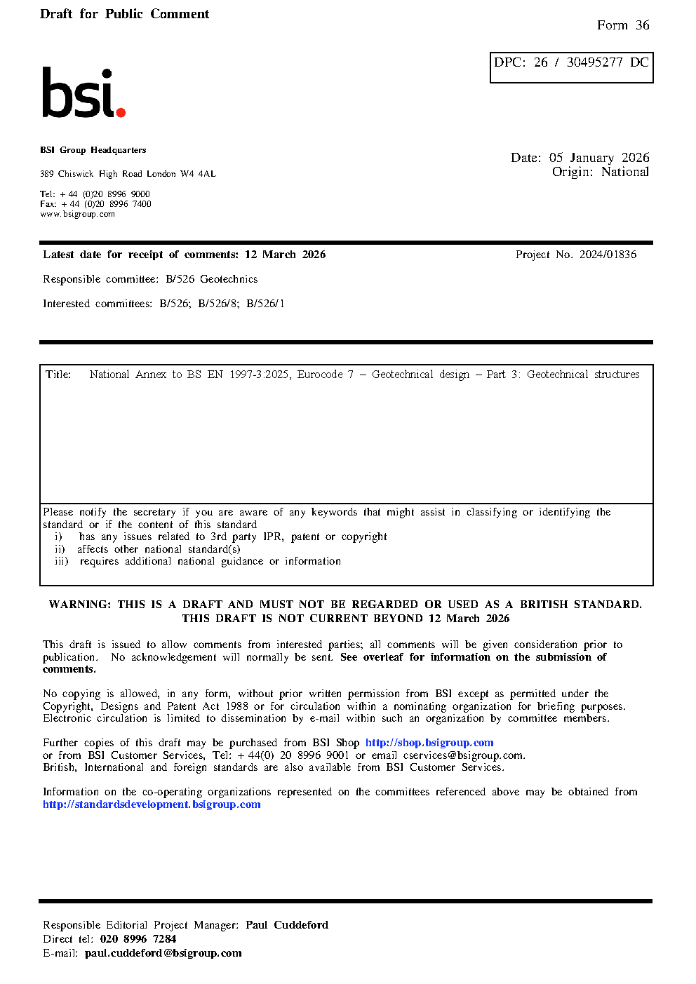 National Annex to BS EN 1997-3. Eurocode 7. Geotechnical design structures
