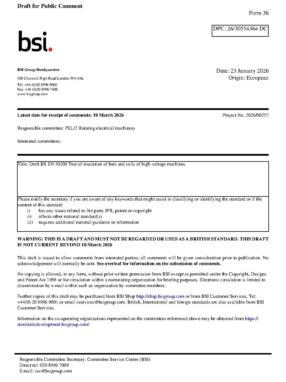 BS EN 50209. Test of insulation of bars and coils of high-voltage machines