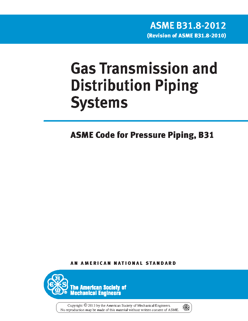 This Code covers the design, fabrication, installation, inspection, and testing of pipeline facilities used for the transportation of gas. This Code also covers safety aspects of the operation and maintenance of those facilities.This Code is concerned only with certain safety aspects of liquefied petroleum gases when they are vaporized and used as gaseous fuels. All of the requirements of NFPA 58 and NFPA 59 and of this Code concerning design, construction, and operation and maintenance of piping facilities shall apply to piping systems handling butane, propane, or mixtures of these gases.
