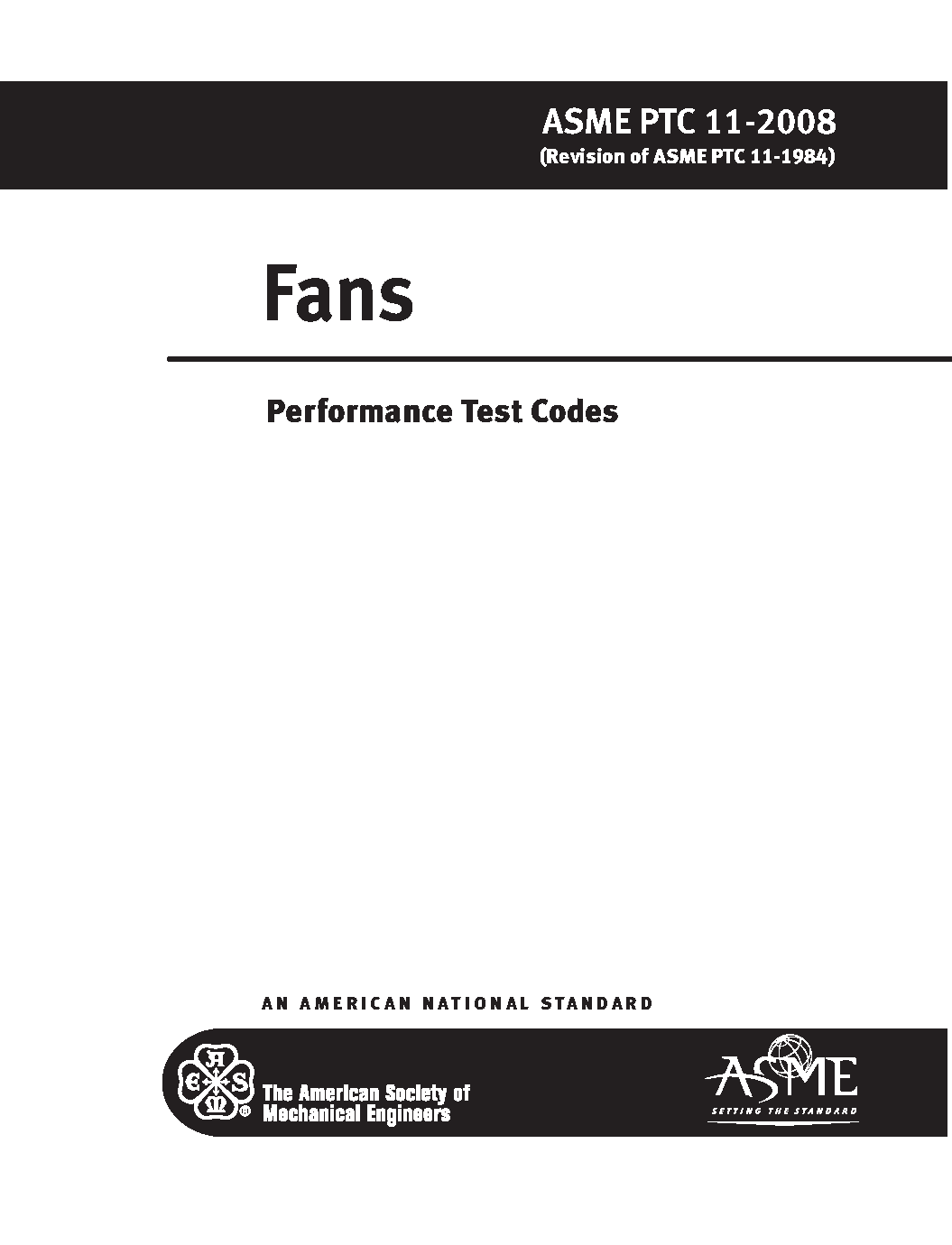 This Code provides standard procedures for conducting and reporting tests on fans, including those of the centrifugal, axial and mixed flow types. This Code provides the rules for testing fans to determine performance under actual operating conditions. It also provides additional rules for converting measured performance to that which would prevail under specified operating conditions. Some of the quantities that can be determined include fan mass flow rate, fan specific energy and fan input power. The scope of this Code is limited to the testing of fans after they have been installed in the systems for which they were intended. However, the same directions can be followed in a laboratory test. (The laboratory test performance may not be duplicated by a test after installation because of system effects.) The term fan implies that the machine is used primarily for moving air or gas rather than compression. The distinction between fans, blowers, exhausters, and compressors in common practice is rather vague; accordingly, machines that bear any of these names may be tested under the provisions of this Code.